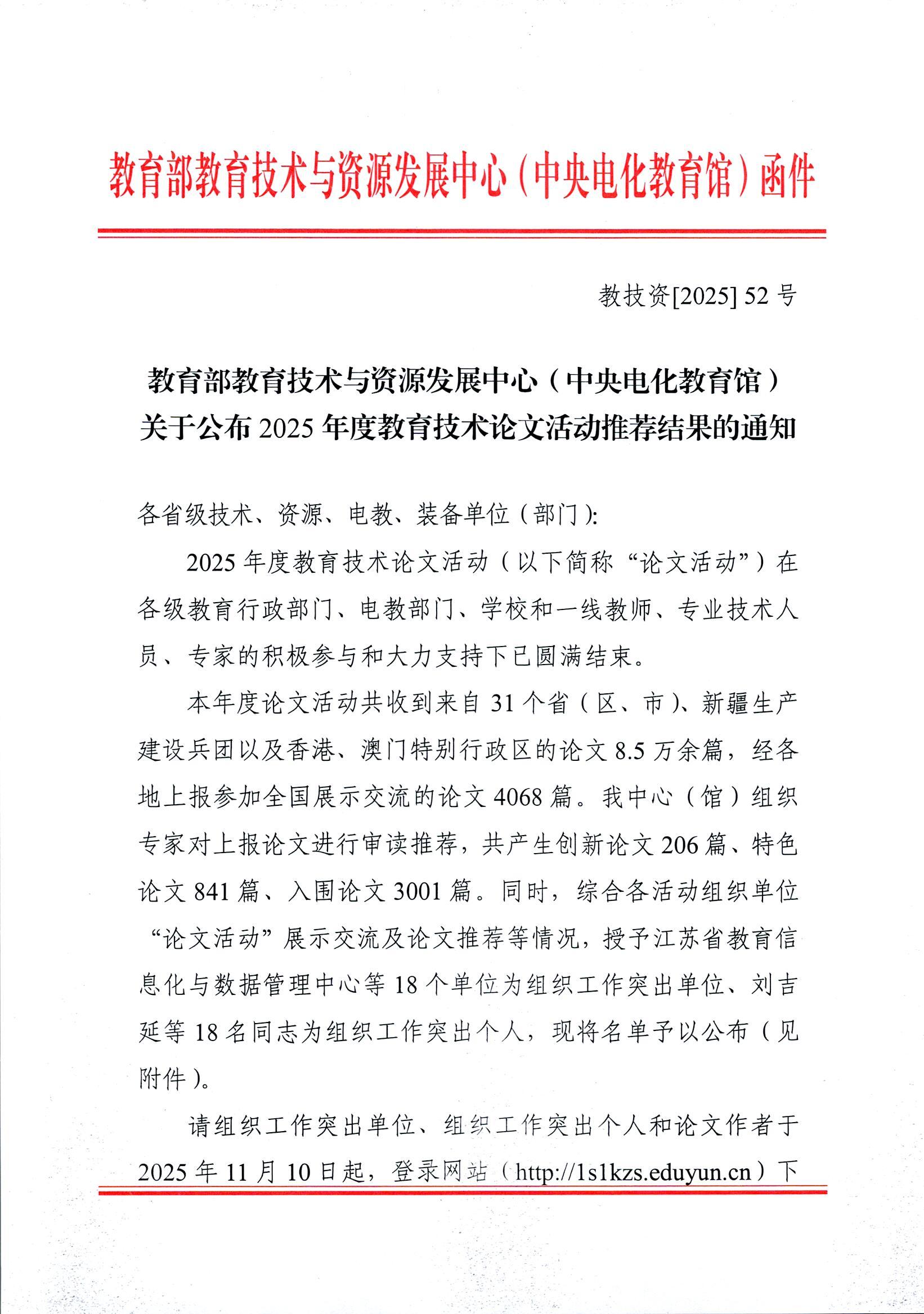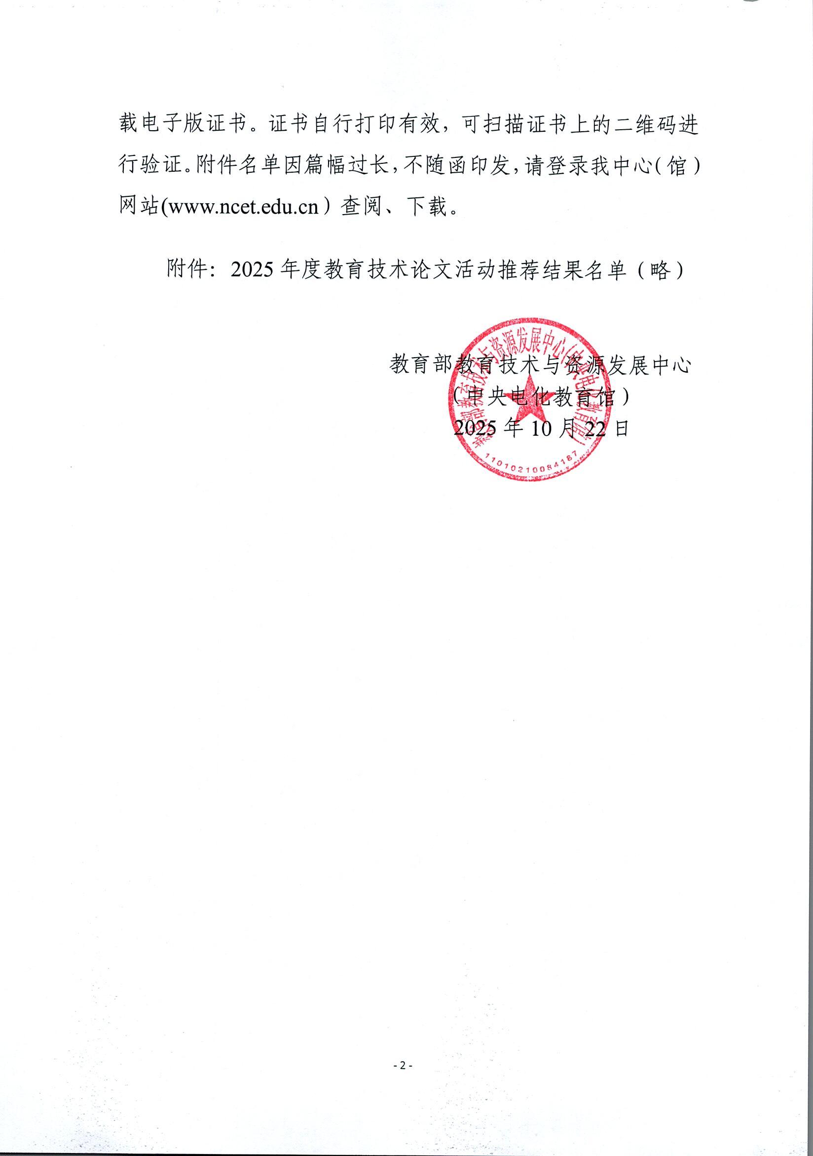 关于公布2025年度教育技术论文活动推荐结果的通知