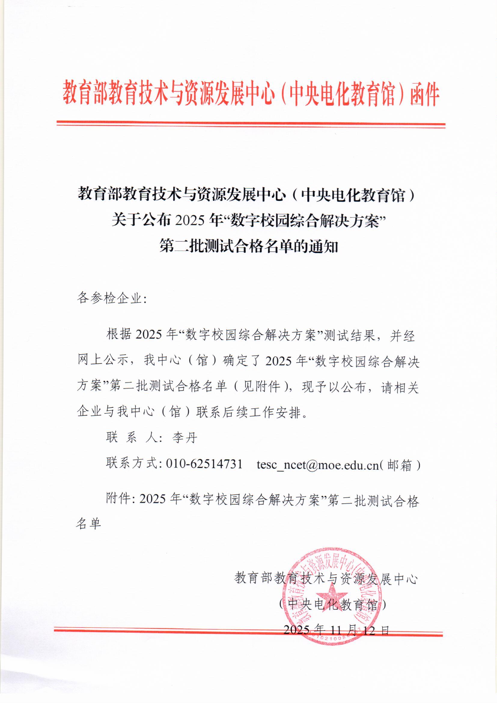 关于公布2025年“数字校园综合解决方案”