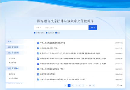 本次语博上线资源5项共150条。其中,语言国情版块“国家语言文字法律法规规章文件数据库”更新,上线的《中华人民共和国国家通用语言文字法》是时隔25年首次修订,于2025年12月27日经第十四届全国人民代表大会常务委员会第十九次会议表决通过,自2026年1月1日起施行;语博学堂版块更新“国家通用语言文字系列微课”相关课程,对变调、轻声、韵母发音等普通话基础知识进行讲解,帮助提升社会大众的普通话水平和语言表达准确性流畅性。活动赛事版块首次上线“‘典耀中华’主题读书行动”栏目,包括特色学校、实践品牌、名师优读等三个部分的103项全国创新实践案例。