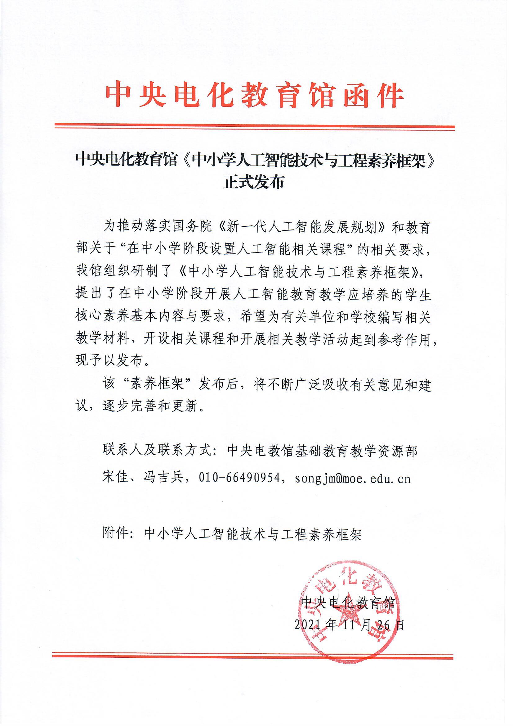 中央电化教育馆《中小学人工智能技术与工程素养框架》正式发布