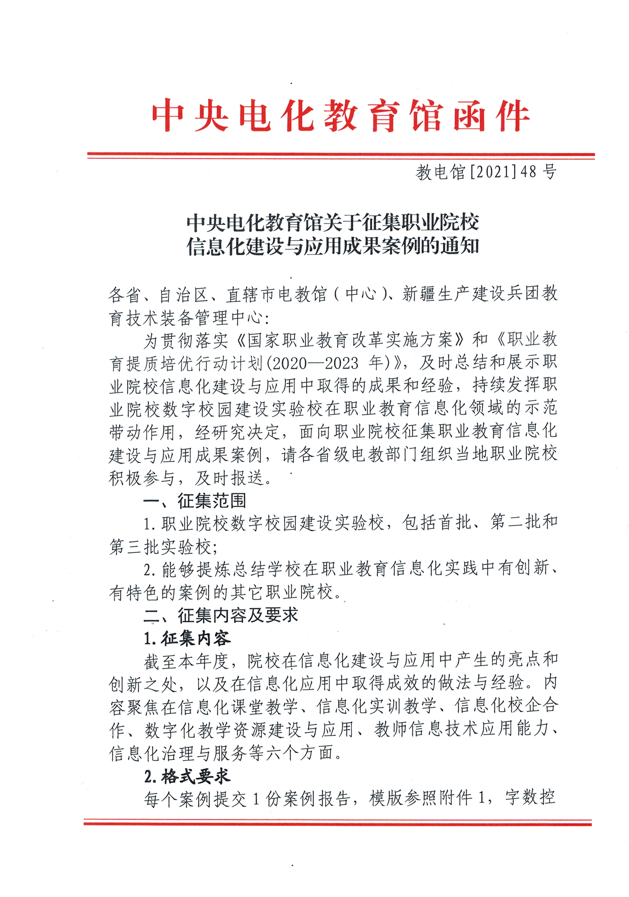 中央电化教育馆关于征集职业院校信息化建设与应用成果案例的通知