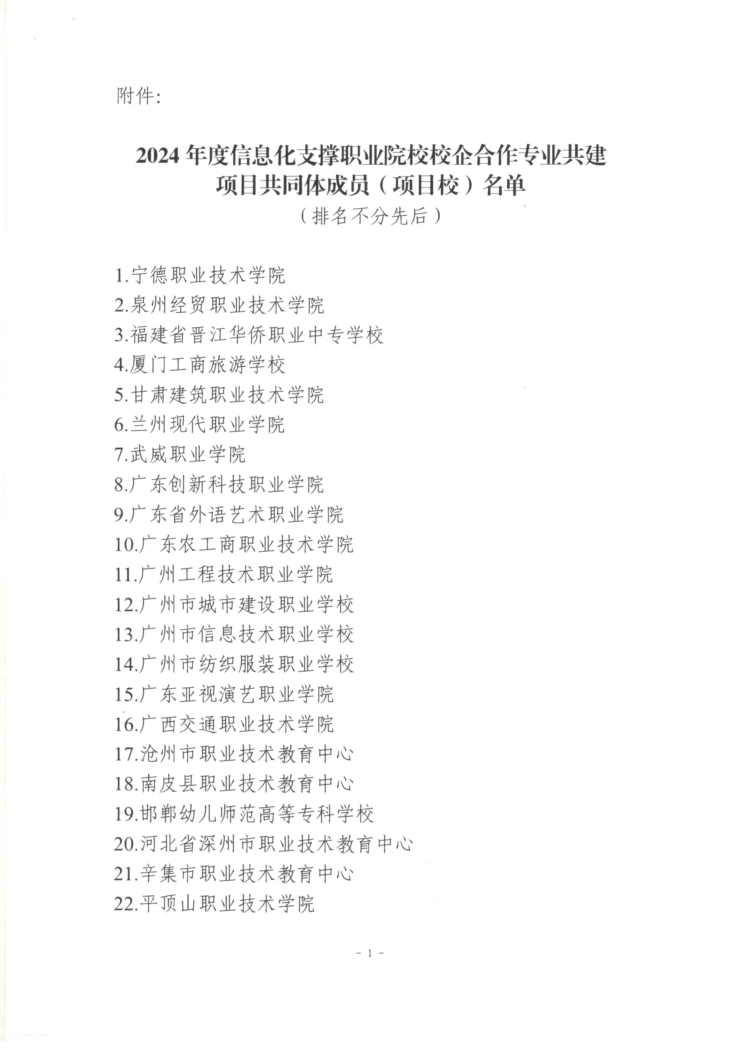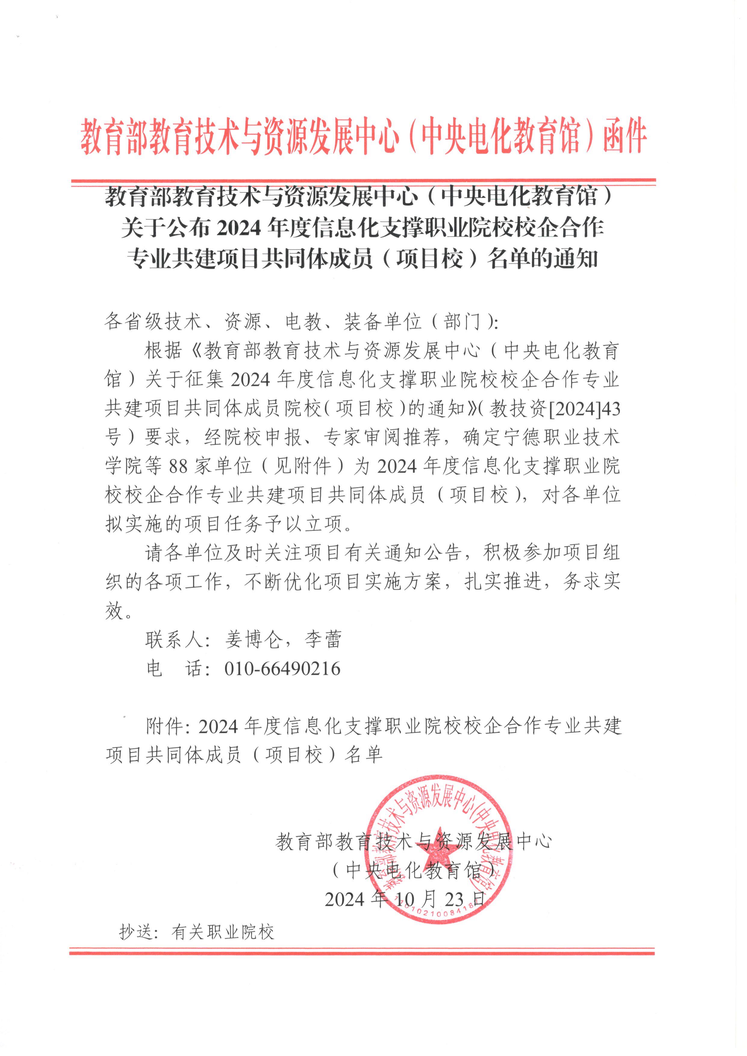 关于公布2024年度信息化支撑职业院校校企合作