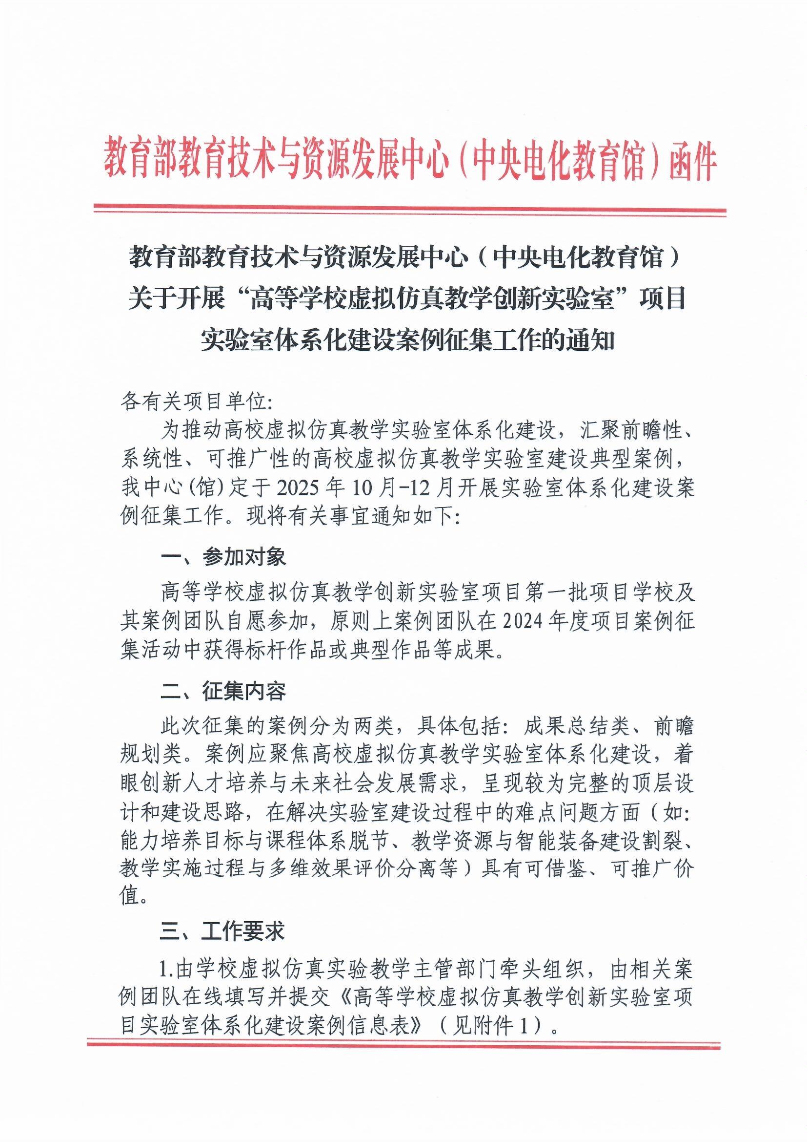 关于开展“高等学校虚拟仿真教学创新实验室”项目