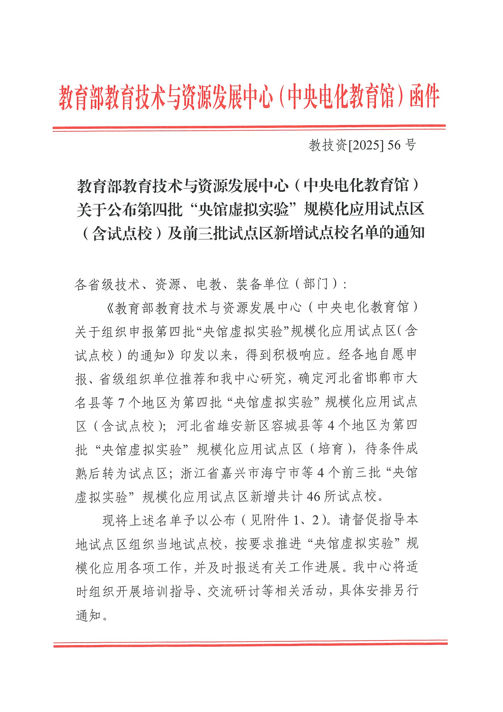 关于公布第四批“央馆虚拟实验”规模化应用试点区