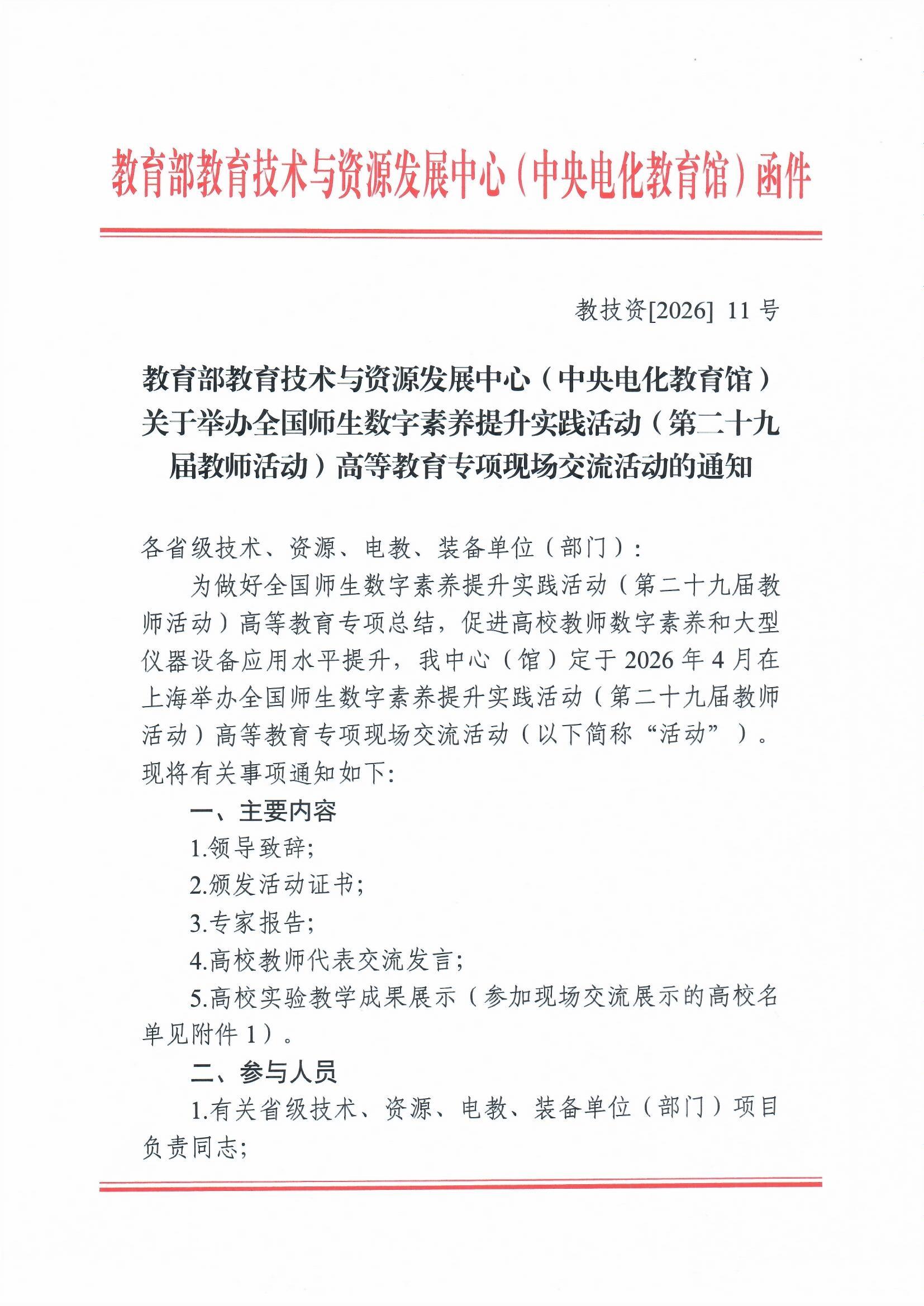 届教师活动)高等教育专项现场交流活动通知