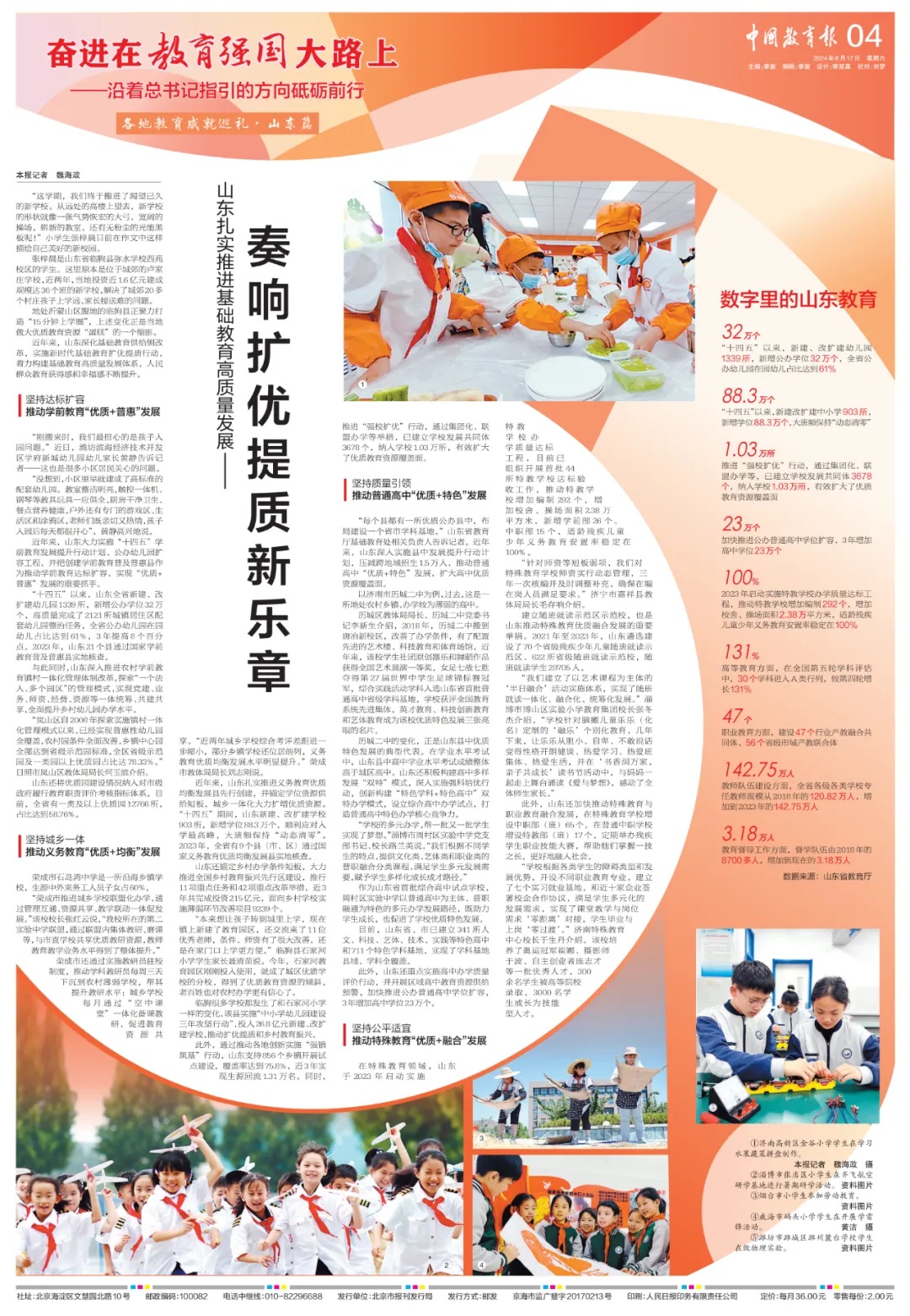 今天,“奋进在教育强国大路上——沿着总书记指引的方向砥砺前行”专栏之“各地教育成就巡礼”系列,通过一组数据、一组大图、一篇报道介绍山东如何扎实推进基础教育高质量发展——