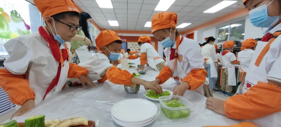 济南高新区金谷小学学生在学习水果蔬菜拼盘制作。中国教育报记者魏海政 摄
