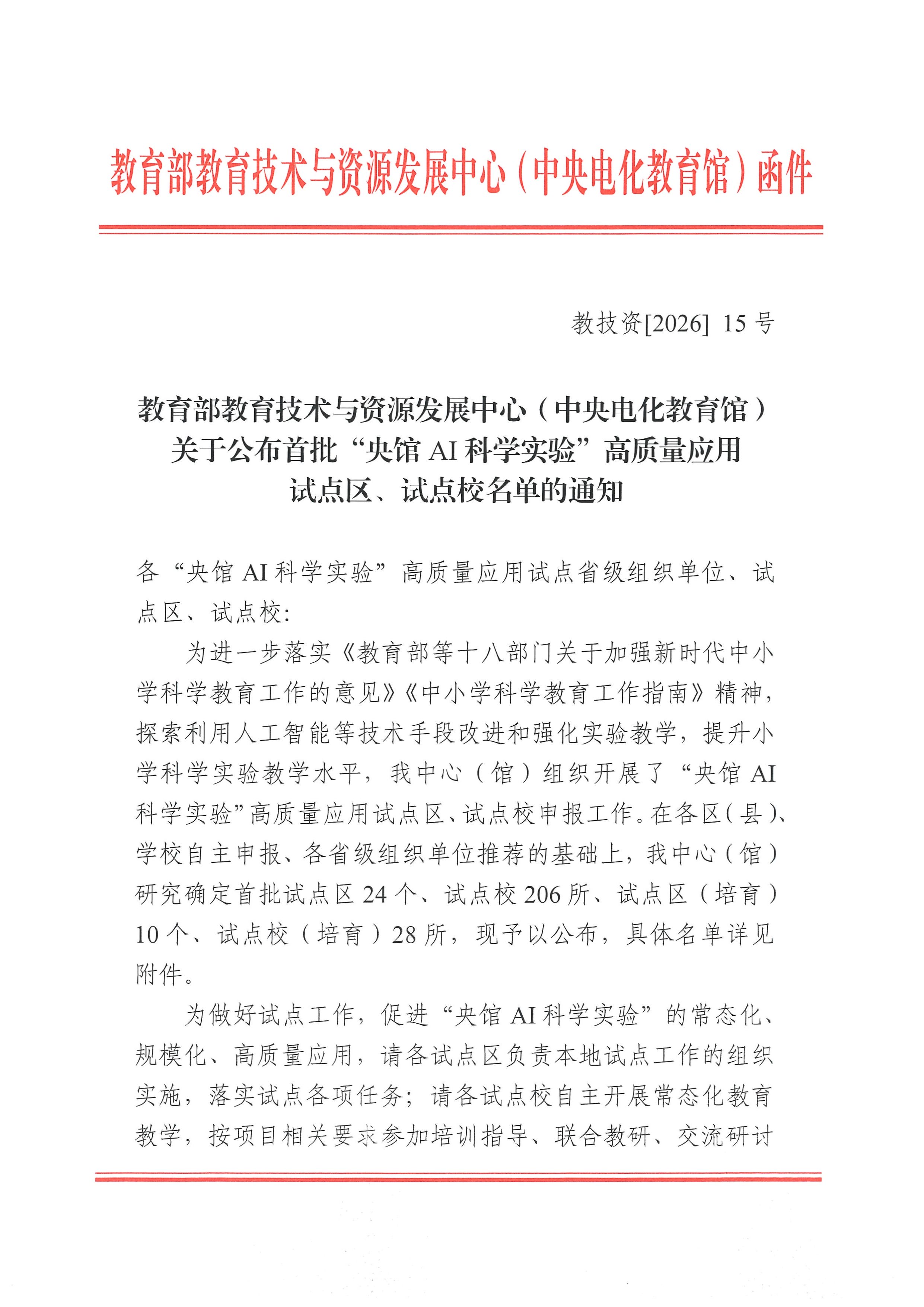 试点区、试点校名单的通知